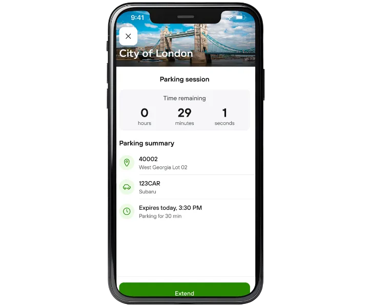 Drivers won’t need to worry about parking fines due to meetings overrunning or a job taking longer than expected. They can extend their parking session remotely through the app, no need to return to the vehicle.